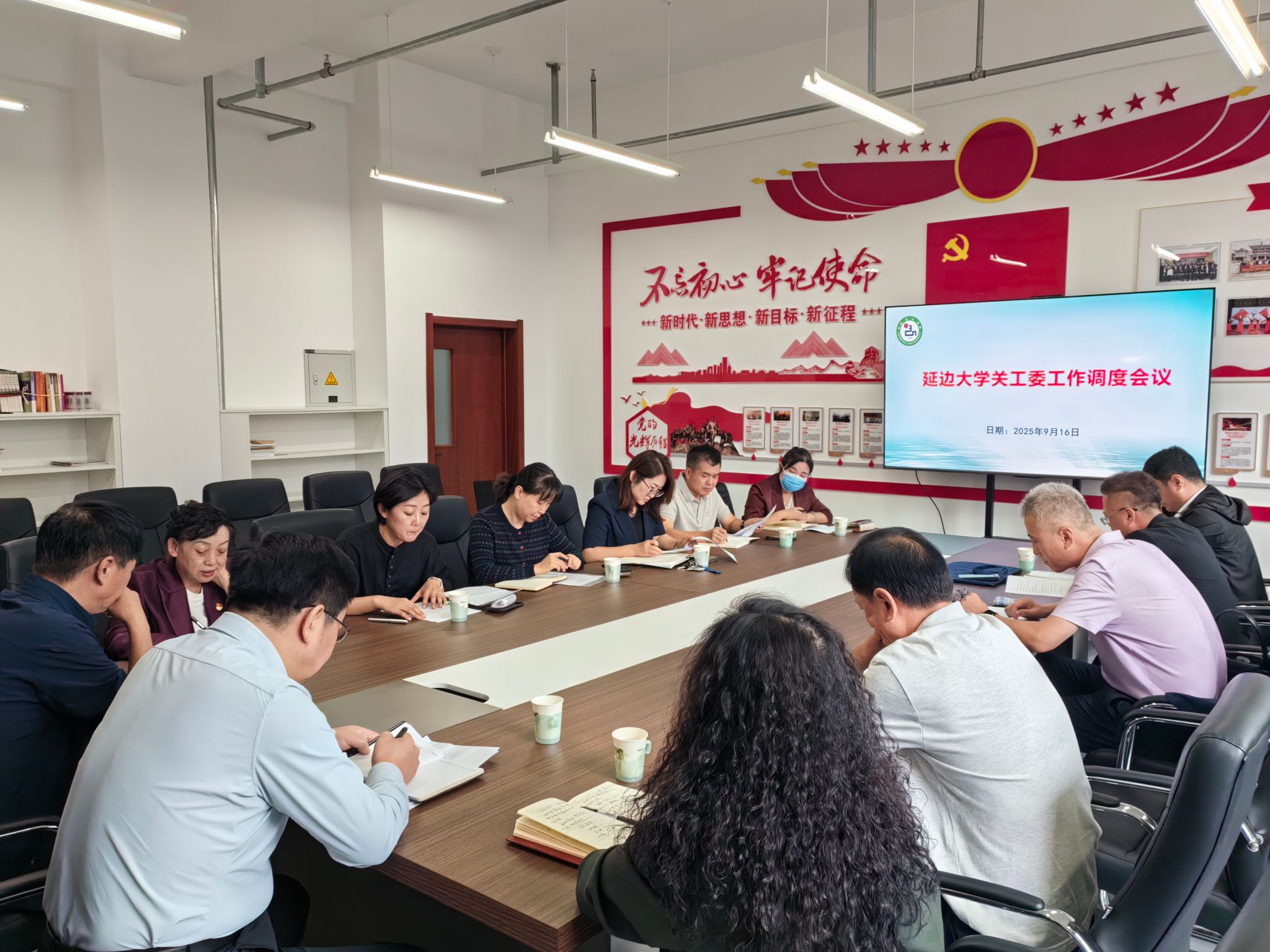 9月16日上午,延边大学关工委在医学实训楼东侧三楼会议室召开工作调度会议。驻会班子成员及学院党委副书记(兼关工委主任)参加会议。校关工委常务副主任朴灿明主持会议。