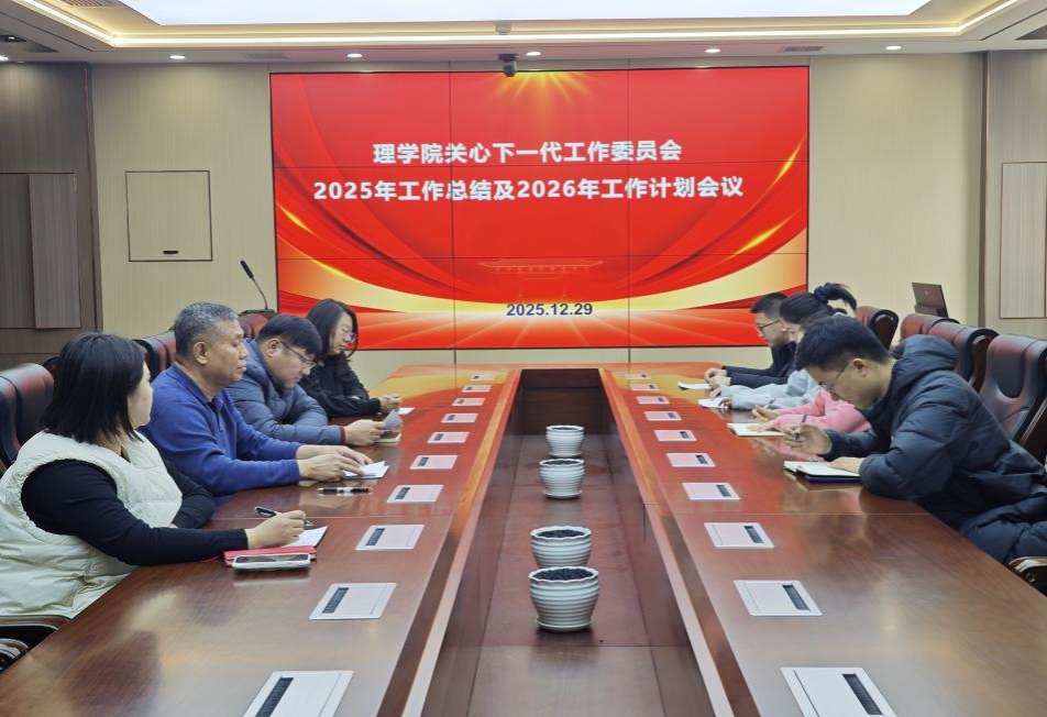 2025 年 12 月 29 日,理学院关心下一代工作委员会(以下简称“院关工委”) 于学院会议室组织召开 2025 年工作总结及 2026 年工作计划会议。会议全面回顾 2025 年关工委工作的扎实成效,重点围绕品牌特色建设绘就 2026 年育人蓝图。 理学院党委副书记(兼学院关工委主任)安成守、学院关工委主任田熙哲及院关 工委委员(含五老委员)悉数参会。