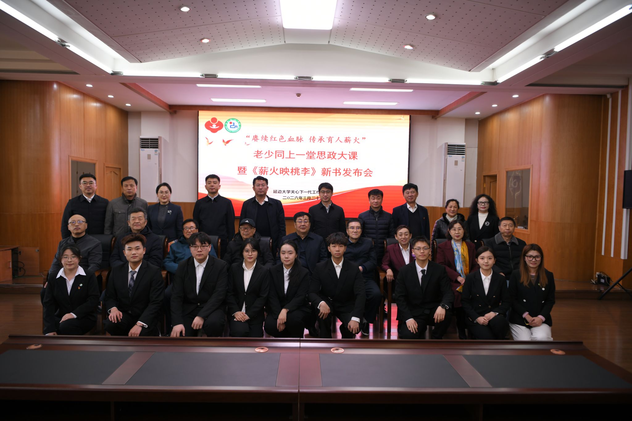 在延边大学关心下一代工作委员会成立35周年之际,校关工委推出《薪火映桃李》纪念文集。日前,“赓续红色血脉、传承育人薪火”老少同上一堂思政大课暨《薪火映桃李》新书发布会在求真楼7楼学术报告厅举行。校党委原副书记、关工委主任蔡奎龙,校党委常委、宣传部·教师工作部部长陈艳玲出席活动。