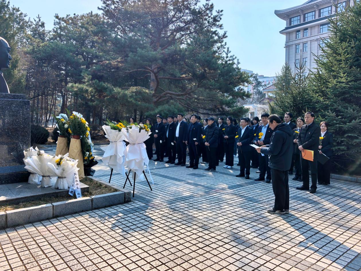 4月3日上午,延边大学关心下一代工作委员会联合校团委、校离退休工作处,组织校学生马克思主义中国化理论学习研究会、校学生会、校研究生会学生代表在延边大学老校长林民镐塑像前开展清明祭扫活动。活动由校关工委副主任宋成岩主持。